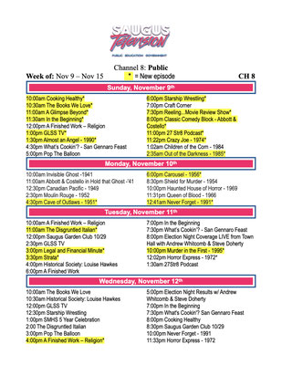Saugus TV is operated and overseen by Saugus Community Television, Inc. (SCTV) and are the PEG (Public, Educational, and Government) access channels on the cable television system in Saugus, Massachusetts. Channel 8 is Public, 9 is Government and 22 is Educational. Saugus TV is located at 30 Main Street, Saugus, Massachusetts and provides our viewing public, our citizens, and institutions located in Saugus with the equipment, training, and cable broadcast time necessary to communicate programming of interest.